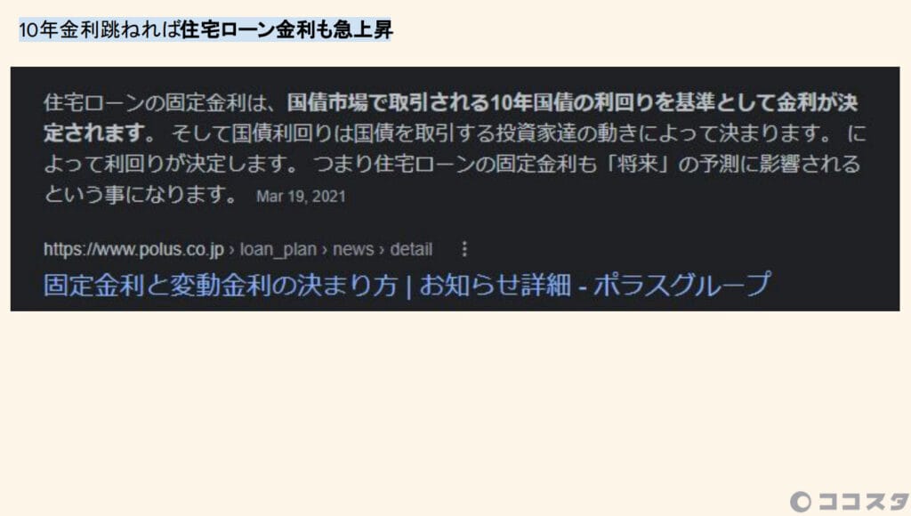↑ 日銀が抑えてきた10年金利は住宅金利の基準となるため、金利上昇で住宅ローン金利は一気に上昇する可能性があります