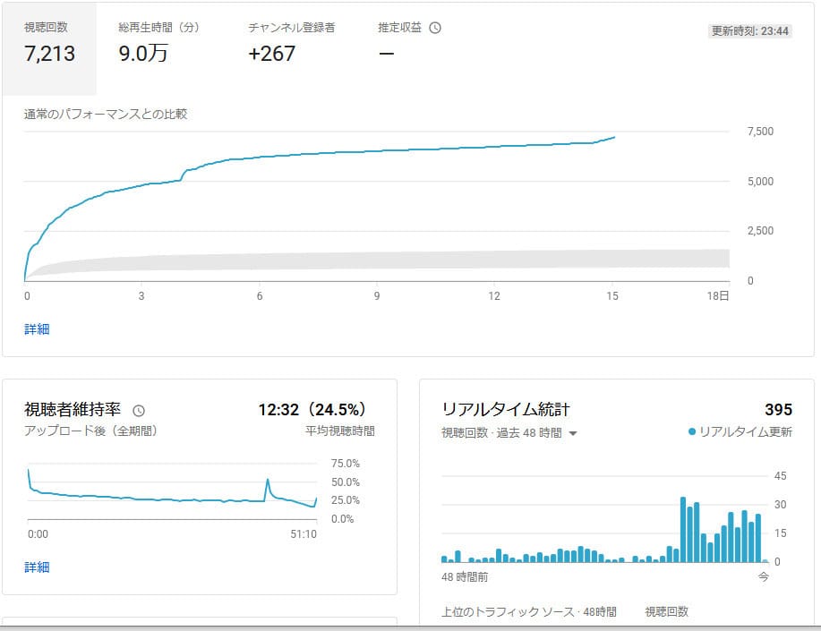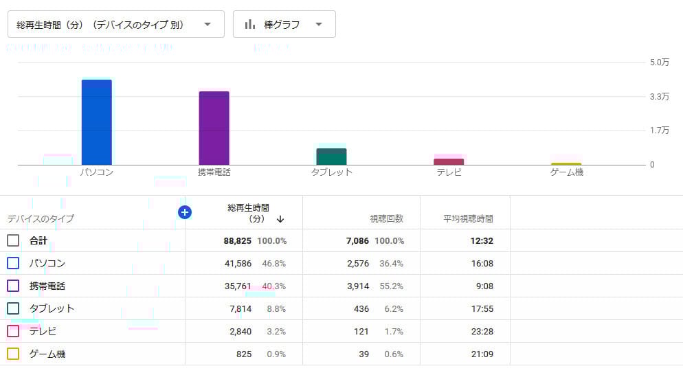 そんな背景で、YouTubeの分析データを見てみました。