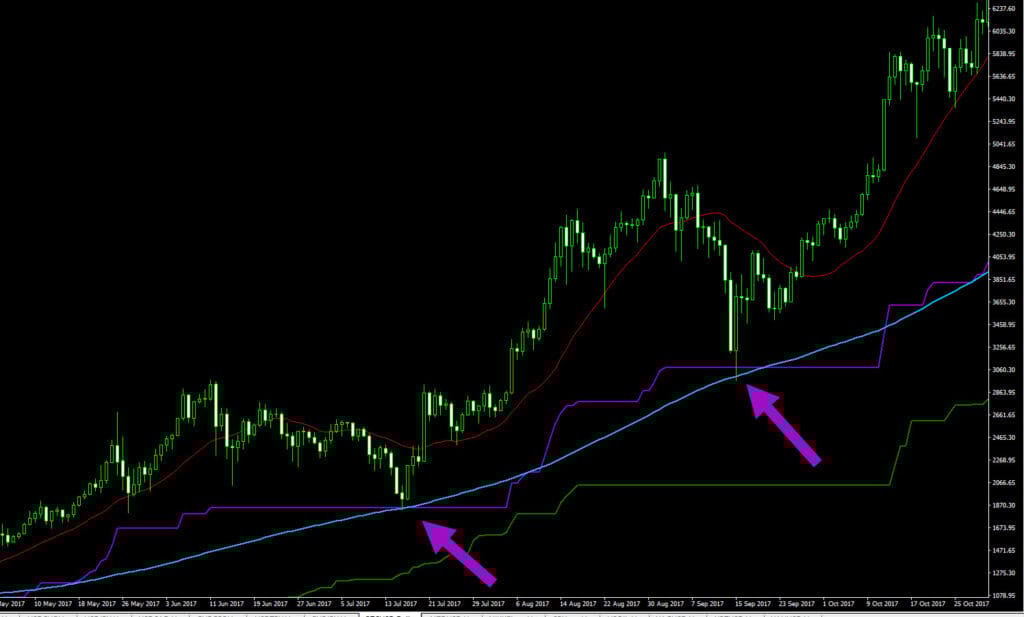 たとえば2017年の上昇トレンドでは、戻りを特定するために作ったことのあるインジケータが、よくワークをしていました。