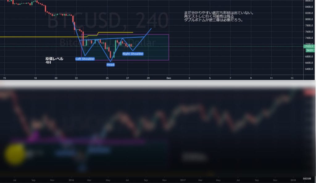 他市場の事例を元に、”今のような状況だと逆三尊を作ってリバーサル・・・” という話をしていました。