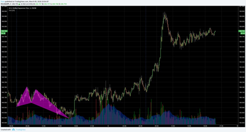 3月8日に高精度ハーモニックから上昇を開始したドル円は、その後も歩みを止めること無く「106.90」まで値を伸ばしました。